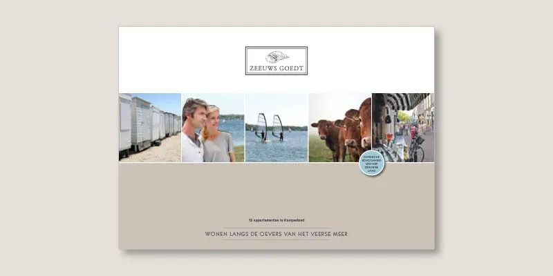 Het nieuwbouwproject Zeeuws Goedt bestaat uit 12 zeer luxe appartementen in Kamperland, Zeeland. Met de Zeeuwse zeelucht in mijn achterhoofd heb ik deze stijl voor het project ontwikkelt. Deze projectcommunicatie bestaat o.a. uit een brochure, bouwbord en advertenties.