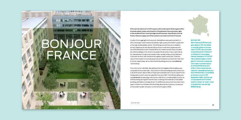 Voor Wereldhave heb ik het Sustainable Business Report ontworpen in de huisstijl van de multinational destijds. In het rapport communiceren we alles volgens de richtlijnen van
